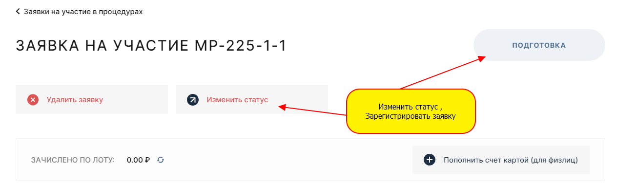 После того, как будет указана сумма предложения в числовом формате и присоединены все запрашиваемые документы, в правом нижнем углу появится кнопка сменить статус/подписать заявку.