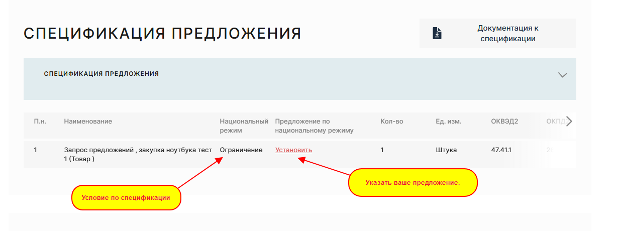 2.4.1    Для процедур по 23ФЗ  и применении национального режима, нужно заполнить информацию и происхождении товара/услуги по спецификации процедуры :