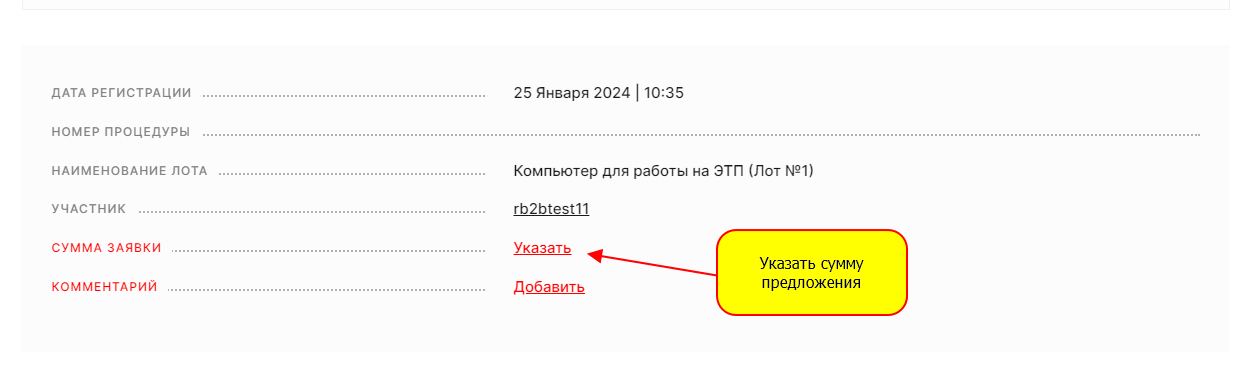 2.5.2. Запрос цен. В поле «Сумма закупки» необходимо указать сумму предложения.