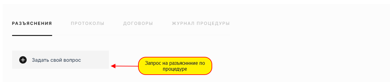 - Разъяснения (для запроса разъяснений по процедуре). В поле необходимо указать вопрос и нажать на «Отправить»;
